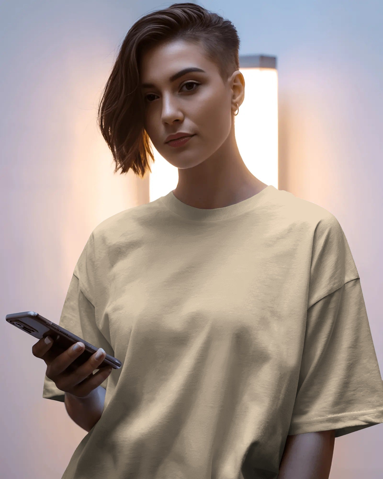 Muted Beige Oversized Women T-Shirt